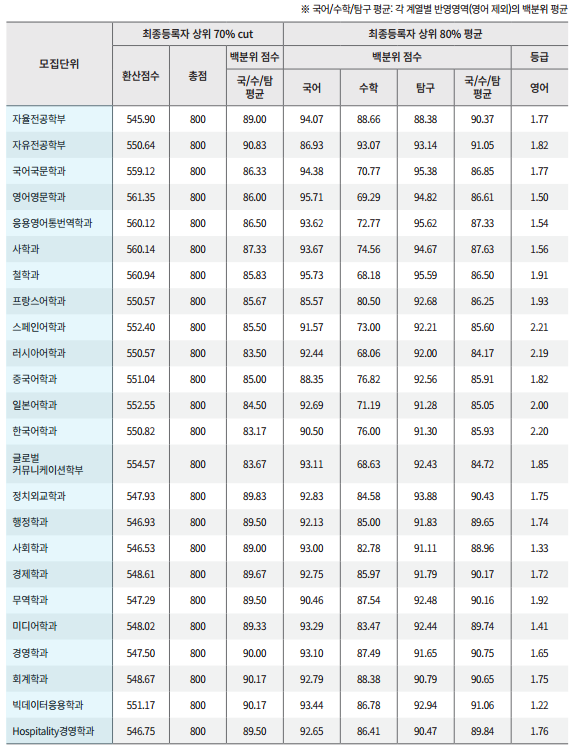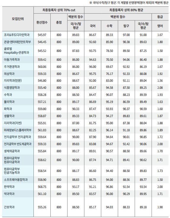 - 자연계열: 과학탐구 응시 시 과목당 4점 가산 유지
