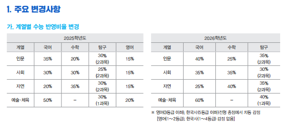 실기 비중이 제외되고 국어·탐구 중심으로 변경되었습니다.