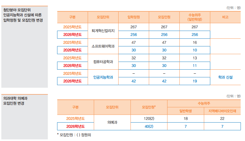 - 자연계열 중심으로 모집인원 조정, 인공지능 관련 학과 신설