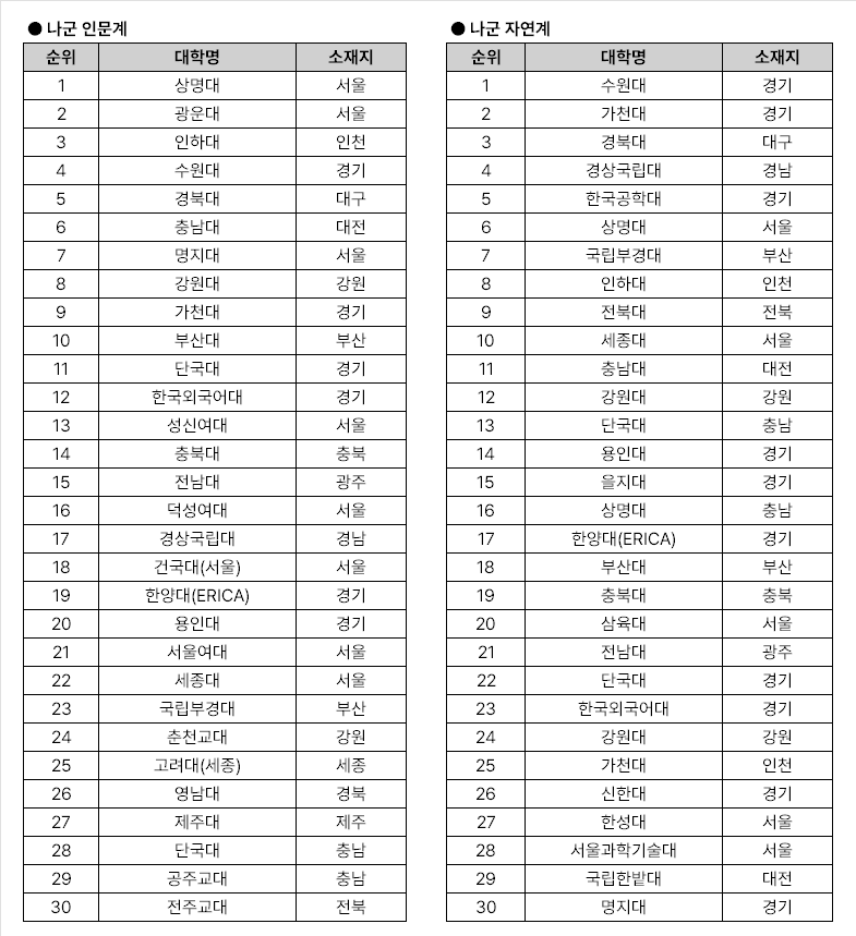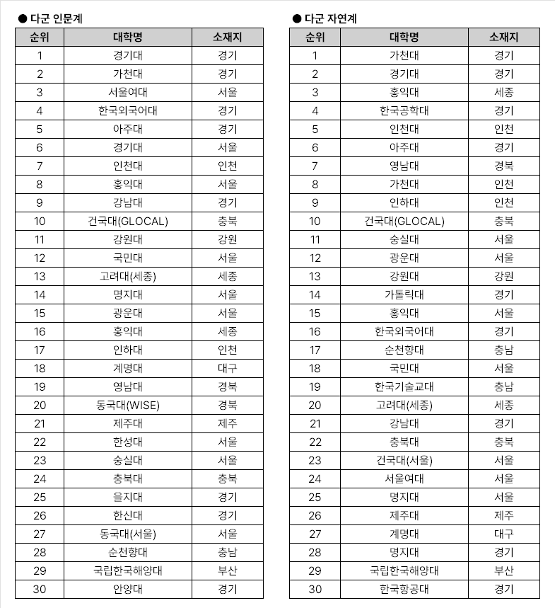 수능 3~4등급이 지원하는 대학교 top 30을 공개합니다.
